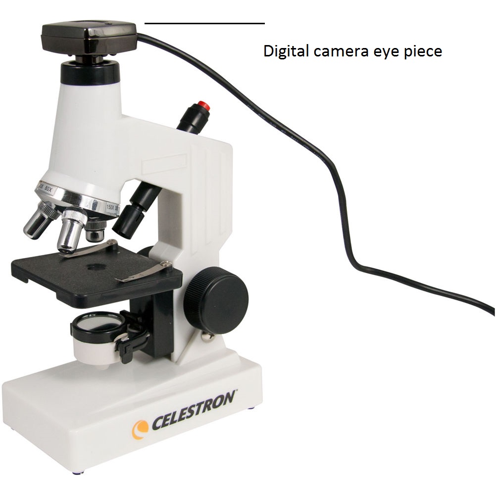 Celestron MDK Microscope Digital Kit With USB Video Camera: It consists of a biological microscope, optical eye piece, digital camera eye piece, prepared slides, specimen samples, tweezer, pen illuminator and software.