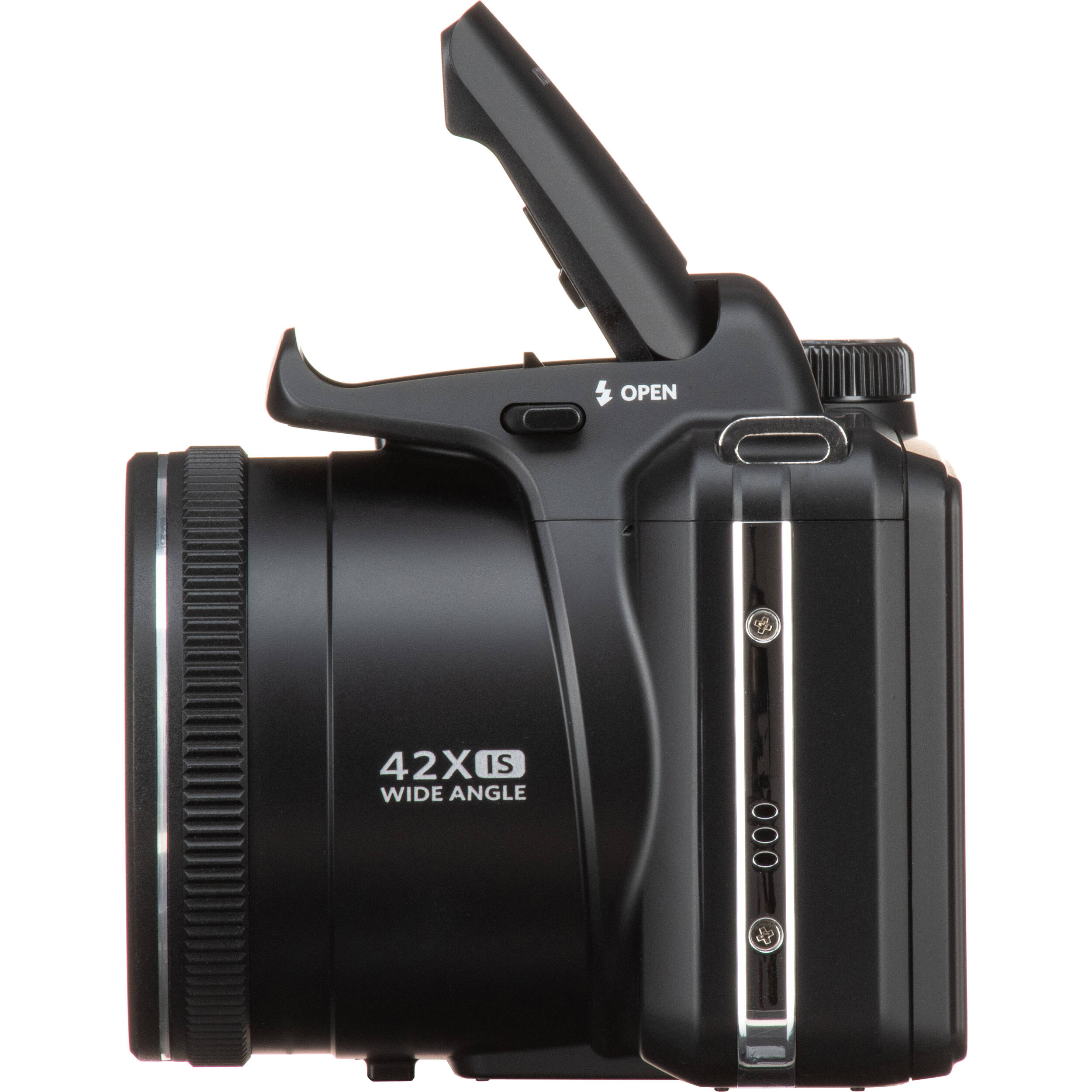 The long-reaching 42x optical zoom lens provides a 24-1008mm equivalent focal length range, covering wide-angle to super-telephoto perspectives, and the 4x digital zoom will further extend the effective reach.