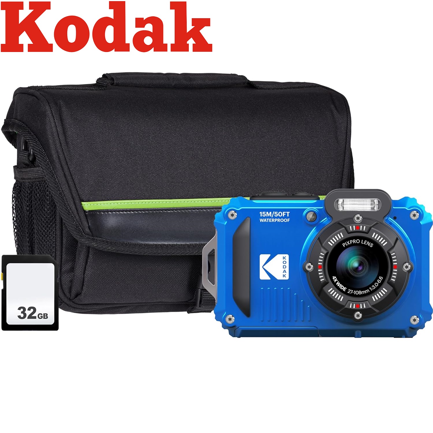 Kodak PIXPRO WPZ2 16MP 4x Zoom Tough Compact Camera - Blue - Camera + Sandisk 32GB MicroSD Card + System Bag